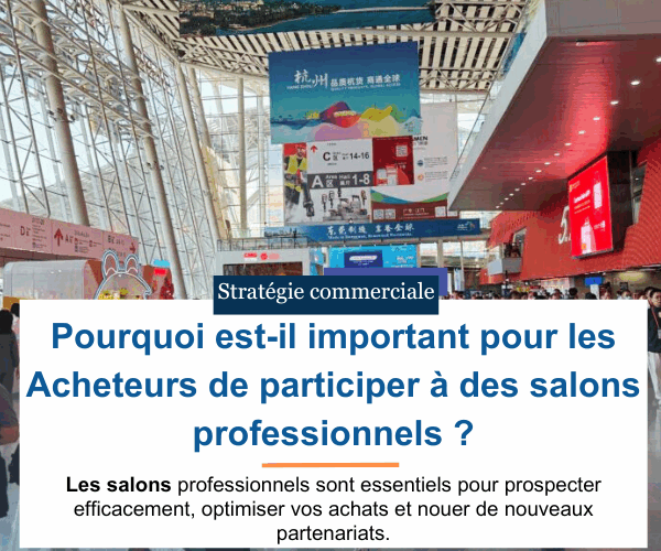 Trouver des fournisseurs en asie : l’importance de participer à des foires commerciales Les foires commerciales sont plus que de simples événements de mise en relation : ce sont des places de marchés où convergent l’innovation, la qualité et les … Lire la suite de Salon des acheteurs en Asie : pourquoi et comment trouver vos fournisseurs